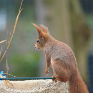 Während die Arbeit an unserem Garten noch auf das Ende der Winterpause wartet, hat ein Besucher auf unserer Terasse sich schon mal mit passendem Nistmaterial eingedeckt.