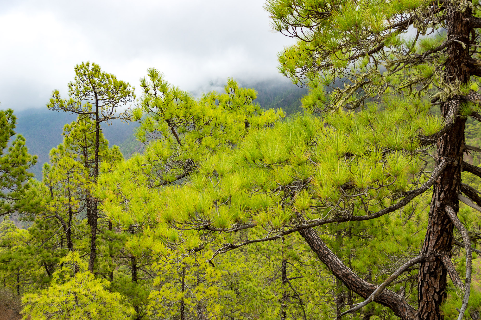 Über diesen Pfad laufen wir nun zwischen den allgegenwärtigen kanarischen Kiefern – immer den Duft der Kiefernnadeln in der Nase. Dem Verlauf des Hanges folgend über die ein oder andere Holzbrücke geht es langsam bergab, bis wir wieder zu einem Abzweig kommen.