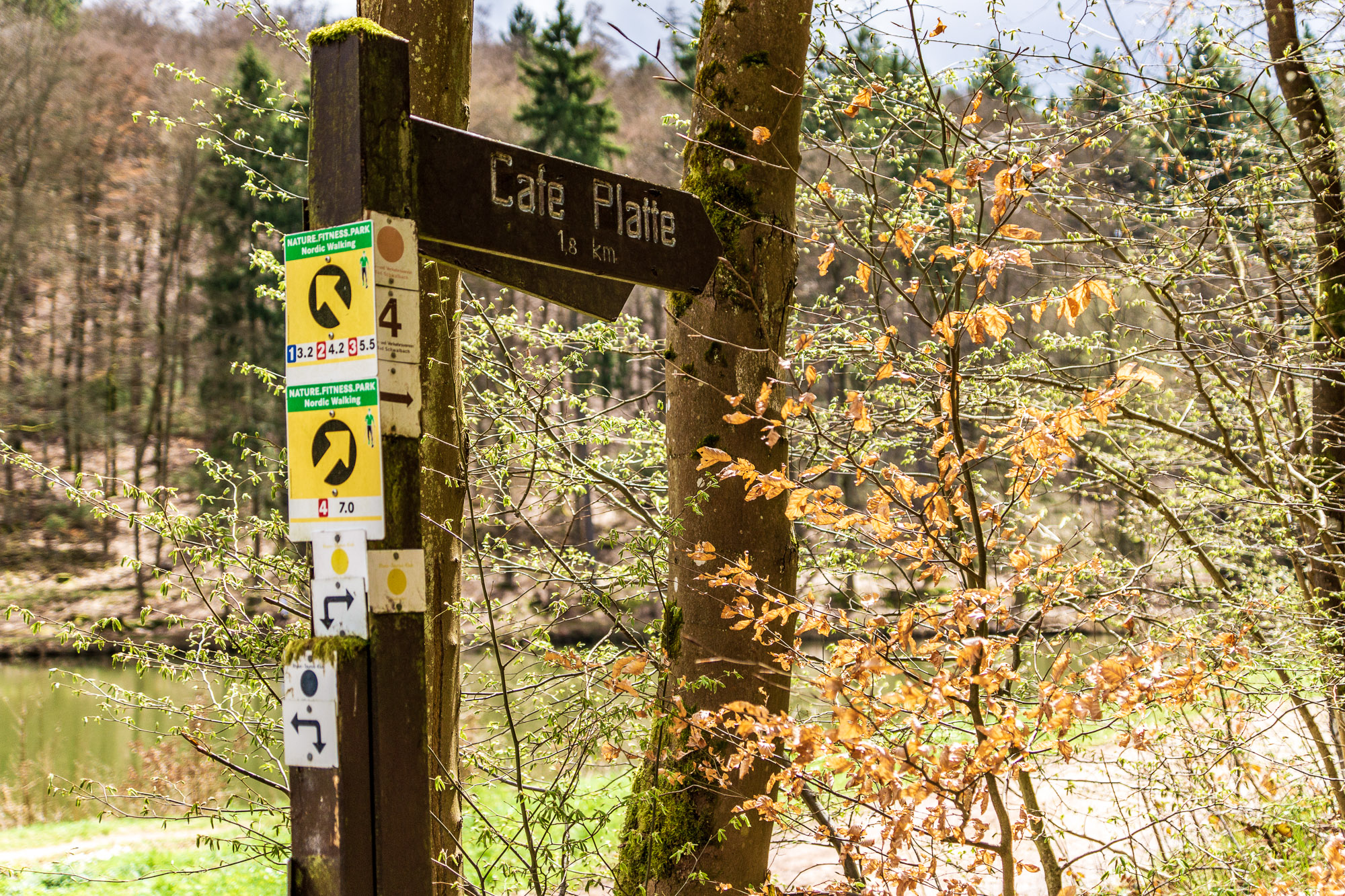 Bergab führt der Weg schließlich in das Menzebachtal nach Bad Schwalbach an den Waldsee. Nachdem die Strecke bisher einsam und ruhig war, trifft man hier deutlich mehr Sonntagsspaziergänger. Hier befinden wir uns am Rande des Geländes der Landesgartenschau 2018 in Bad Schwalbach, die vom 28. April bis 7. Oktober in der Kurstadt stattfindet – sicher ein lohnendes Ausflugsziel für die kommenden Wochen und Monate.
