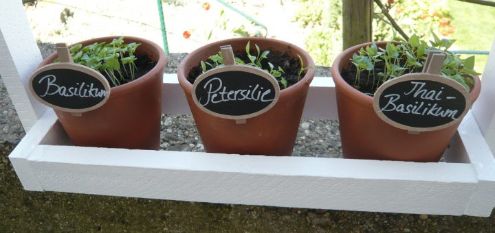 … mit der Gartengestaltung, der vor 10 Tagen neu gesäte Rasen beginnt bereits zu keimen. Und wir haben ein Herz für Tiere und verwenden Rindenmulch statt Rindermulch (via Shopblogger)!